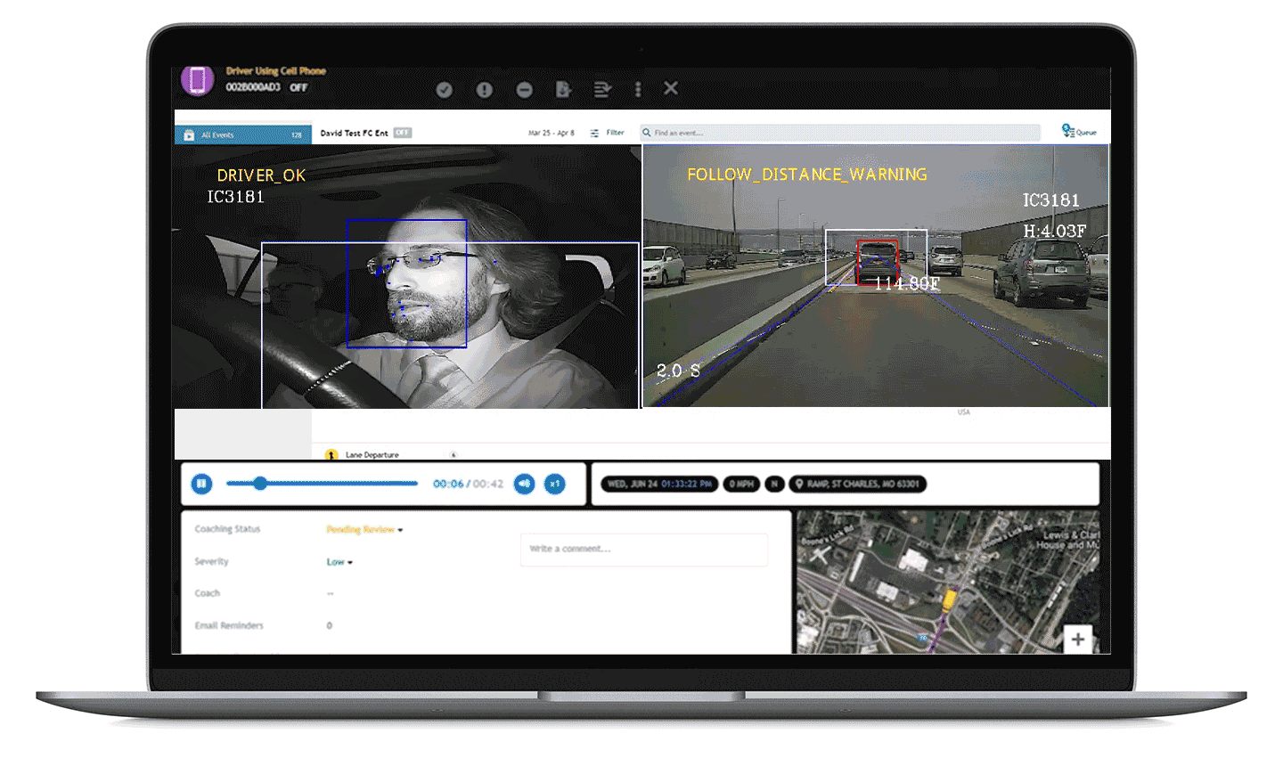La video telemática combina la información del vehículo y de conducción para dar más contexto a cualquier secuencia de video de un incidente mientras se transmite la evidencia de video en tiempo real a través de una red celular.